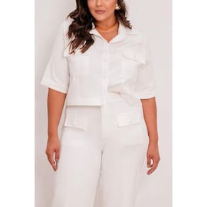 Conjunto Plus Size Ana Maya . Conjunto Camisa Cropped superelegante manga 3/4 composta por botões e bolsos frontais em alfaiataria, possui uma costura que se ajusta ao corpo simetricamente, proporcionando conforto além de uma postura mais elegante e valorizando ainda mais o corpo da mulher trata-se de um modelo mais sério e refinado, combina com diversas ocasiões.