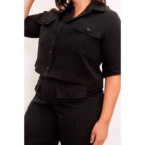 Conjunto Plus Size Ana Maya . Conjunto Camisa Cropped superelegante manga 3/4 composta por botões e bolsos frontais em alfaiataria, possui uma costura que se ajusta ao corpo simetricamente, proporcionando conforto além de uma postura mais elegante e valorizando ainda mais o corpo da mulher trata-se de um modelo mais sério e refinado, combina com diversas ocasiões.