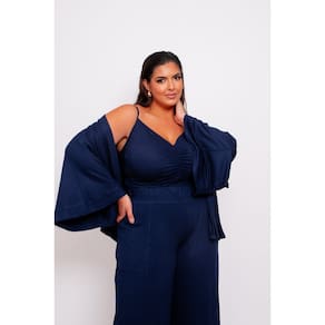 Conjunto Plus Size Feminino com Cardigan, Calça Pantalona e Top - Elegância e Conforto Este conjunto plus size feminino é a escolha perfeita para mulheres que buscam um visual sofisticado sem abrir mão do conforto. Composto por três peças versáteis e elegantes: um cardigan leve, uma calça pantalona de cintura alta e um top com alças ajustáveis. O cardigan, com suas mangas amplas e comprimento fluido, adiciona movimento e leveza ao visual. Ele é ideal para quem busca um toque de sofisticação para completar o look, seja para o dia a dia ou eventos especiais. A peça garante conforto e versatilidade, podendo ser usada aberta ou fechada, conforme a ocasião. A calça pantalona oferece um caimento perfeito, com cintura alta que alonga a silhueta e proporciona maior conforto ao corpo. O tecido leve garante liberdade de movimento e uma sensação de frescor, sendo a escolha ideal para momentos que pedem elegância e praticidade. O top com alças ajustáveis e franzido frontal é moderno e valoriza o busto com seu design minimalista e elegante. Confeccionado em tecido macio, ele se ajusta confortavelmente ao corpo, completando o conjunto com sofisticação. Disponível em cores neutras e elegantes, como o preto e o azul, esse conjunto oferece diversas possibilidades de combinações para diferentes estilos e ocasiões.