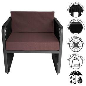 Com estrutura em aluminio e acabamento em corda nautica, este conjunto e ideal para quem deseja unir durabilidade e elegancia. O assento e encosto macio e confortavel com tecido impermeavel, tornando-o perfeito para espacos como areas gourmet, varandas, areas de churrasqueira e ediculas.