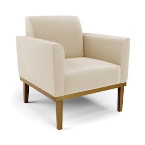 Conjunto Poltrona E Namoradeira Decorativa Isabella Pés Fixo Em Madeira Castanho Suede Bege G19 - Gran Belo