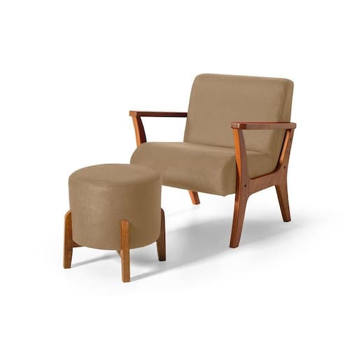 Conjunto Poltrona Estofada Cléo com Puff Redondo Berlim Straub Web