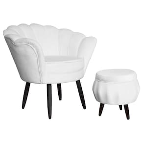 Conjunto Poltrona Estofada Com Puff Sala de Estar Pétala Suede Branco - LM DECOR