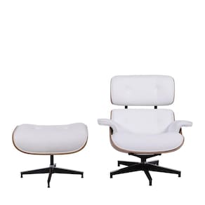 O conjunto Poltrona giratória e Puff Eames é produzido em laminado de madeira e base de alumínio, ideal para levar elegância e conforto para os ambientes de sua preferência. Seu braço contém uma estrutura reforçada para evitar quebra, o assento e encosto são estofados, revestidos couro macio e maleável, além de toda a comodidade que ela proporciona,