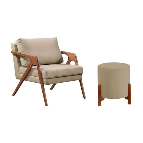 Tipo: Conjunto Modelo: Poltrona Mona e Puff Thor Tecido: Linho Cor: Bege