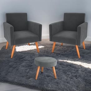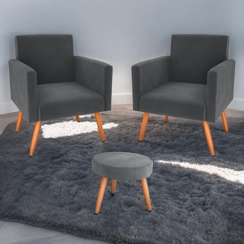 Conjunto de Poltronas e Puff é o ápice do conforto e do estilo. Com um design unico, combina elegância e funcionalidade, tornando-se o complemento perfeito para qualquer ambiente.