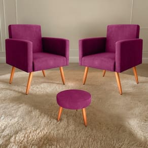 Conjunto de Poltronas e Puff é o ápice do conforto e do estilo. Com um design unico, combinam elegância e funcionalidade, tornando-se o complemento perfeito para qualquer ambiente.
