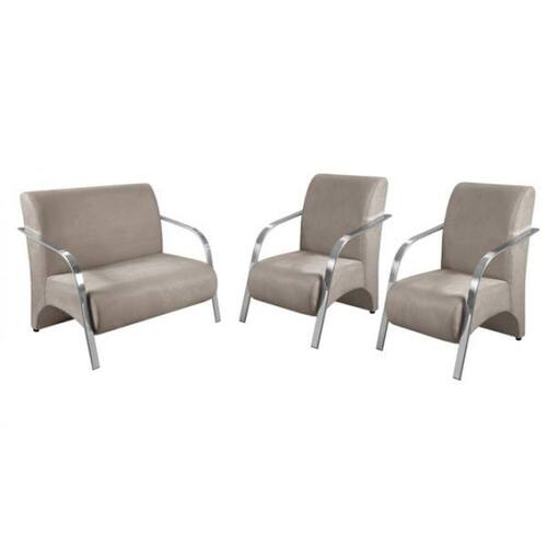 Conjunto Poltronas Venus Braços em Alumínio 1 Namoradeira 2 de um Lugar Suede - Bege Médio
