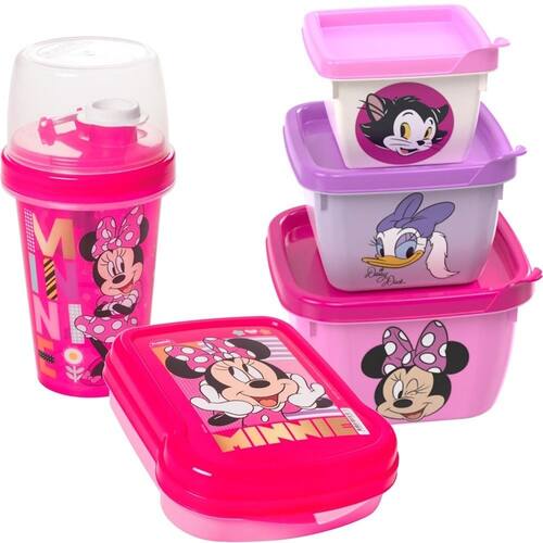 Kit Minnie Rosa 3 Potes, Shakeira e Sanduicheira Plasutil Perfeito para levar aquele lanche para escola, passeio ou até para o dia a dia Pode levar na bolsa, mochila ou lancheira Super leve e compacta muito pratico de transportar