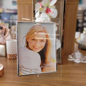 Decore seu espaço com classe e guarde suas melhores lembranças com o Porta-Retrato em Vidro com Borda Prata. Adquira já o seu!