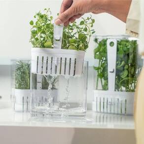 Projetados para armazenar folhas delicadas como salsinha, coentro, hortelã, rúcula e muito mais, os potes contam com design funcional e espaço para adicionar água na base, criando um ambiente úmido controlado, perfeito para prolongar a durabilidade dos alimentos.