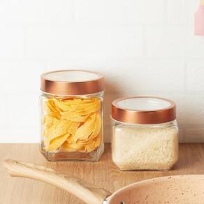 Conjunto Pote de Vidro Tampa Metal Rose Gold 800ml e 1,7L Gastro Lyor Porta Mantimentos.