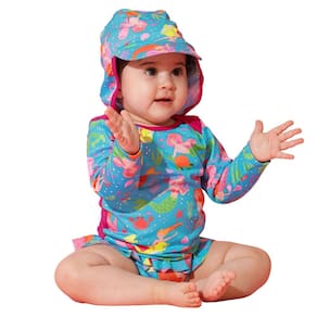 Leve diversão e segurança para os dias ensolarados com este encantador conjunto de praia bebê sereias divertidas. Com uma alegre estampa de sereias e elementos de fundo do mar, a blusa possui costas pink. A calcinha azul com babadinhos completa o visual, adicionando um toque adorável e delicado. Possui proteção UV 50+, que proporcionam leveza, flexibilidade, conforto, resistência a produtos químicos e conservação da temperatura corporal. Esse conjunto garante que sua bebê estará protegida dos raios solares enquanto aproveita o verão com estilo.