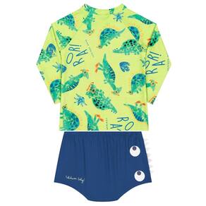 O Conjunto de praia Dinossauros Verde Limão com proteção UV 50+ é perfeito para bebês. Em um tom neon com sunga tapa fralda Azul Royal com detalhes nas laterais e olhinhos de dinossauro na parte traseira, este conjunto de manga longa conta com estampa de simpáticos dinossauros mergulhadores! Confortável, prático e seguro, ele é ideal para dias ensolarados na praia ou piscina, garantindo estilo e proteção para os pequenos.