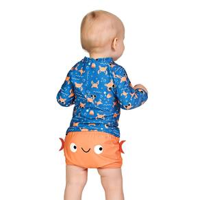 O Conjunto de praia Siri Azul Royal com proteção UV 50+ é perfeito para bebês. Em um tom azul royal com sunga tapa fralda laranja com detalhes nas laterais e olhinhos de siri na parte traseira, este conjunto de manga longa conta com estampa de simpáticos caranguejos! Confortável, prático e seguro, ele é ideal para dias ensolarados na praia ou piscina, garantindo estilo e proteção para os pequenos.