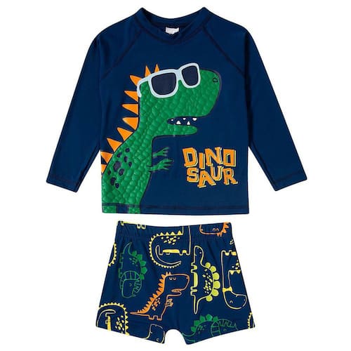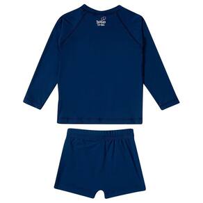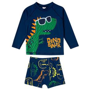 O Conjunto Praia Infantil Dino Marinho da Tip Top possui proteção solar FPS 50+ permanente, é super leve, confortável e seguro, além de lindo e estiloso. É o conjunto que o seu pimpolhinho precisa para curtir a praia ou a piscina com toda a proteção, sem perder a liberdade dos movimentos.