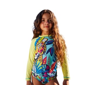 O Conjunto Praia Menina Proteção UV Onça Tropical da Tip Top é ideal para as pimpolhas poderem aproveitar a praia com todo estilo e proteção. Possui proteção solar permanente (FPS 50+) tem design moderno e confecção em tecidos leves.