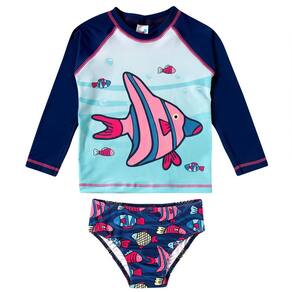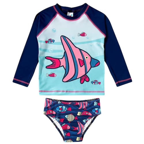 O Conjunto Praia Menina Proteção UV Peixes Marinho da Tip Top é ideal para as pimpolhas poderem aproveitar a praia com todo estilo e proteção. Possui proteção solar permanente (FPS 50+) tem design moderno e confecção em tecidos leves.