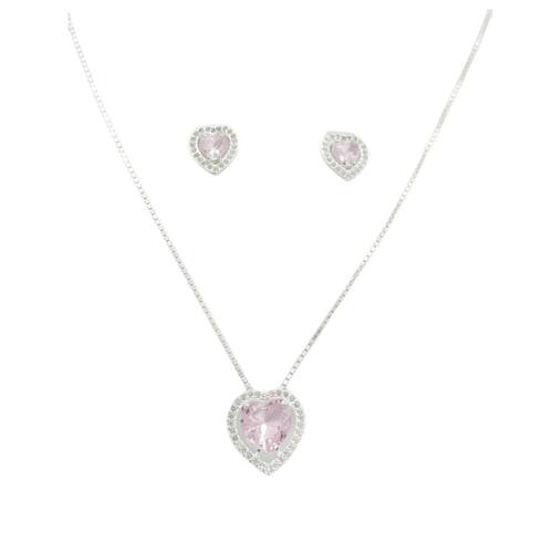 Conjunto colar e brindo em prata 925 com coração e moldura cravejado zircônia - anti alérgico