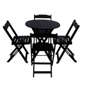 Conjunto De Mesa Dobravel De Madeira 70cm Redondo Com 4 Cadeiras PretoTenha um pacote completo de praticidade com este conjunto, ideal para restaurantes, bares, estabelecimentos comerciais, áreas de lazer ou até mesmo para sua casa. Feito em madeira maciça, resistente e durável. Seu design permite que seja encaixado em vários ambientes trazendo um toque estético a mais ao mesmo. Além de estética, este conjunto de mesas e cadeiras também garante praticidade de locomoção dos produtos e longa durabilidade.ATENçãO: EVITE USAR PRODUTOS ABRASIVOS E QUíMICOS PARA LIMPEZA DO PRODUTO, aconselha-se o uso de pano umedecido para melhor conservação; mantenha o produto fora de chuva e sol constantes.Matéria prima:Madeira Maciça, de alta densidade e resistente.Sua variação de tonalidades é uma característica típica desta madeira, podendo apresentar diversos tons num mesmo produto em harmonia com o brilho do verniz.Modelo: DobrávelCor: Preto Dimensões (Mesa): Altura 90cm / Largura 70cm / Profundidade 70cm Dimensões (Cadeiras): Altura 88cm / Largura 43cm / Profundidade 33cmConjunto Premium de Mesa Dobravel de Madeira 70cm Redondo com 4 Cadeiras Preto