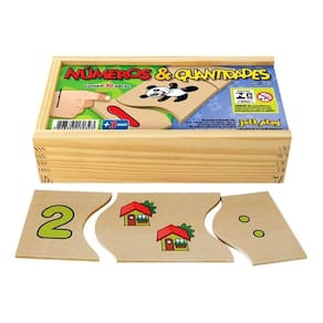 Conjunto números e quantidades 30 peças Números e quantidades em caixa de madeira medindo 24x12x6cm com 30 peças em mdf para justapor os números com suas respectivas quantidades. A criança de forma lúdica associa o número á quantidade numérica representada. O resultado correto se dá pelo encaixe perfeito das peças.