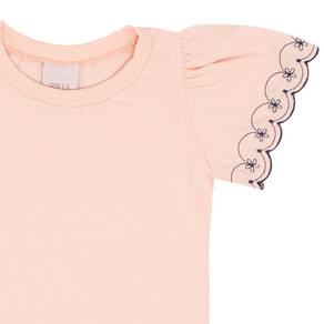 Conjunto básico e fashionista! Ideal para usar as peças juntas ou criar novas alternativas com elas separadamente, o conjunto é composto pela blusa em meia malha na cor rosa pó com bordado diferenciado nas mangas e decote arredondado e o short saia na cor marinho que possuí pregas leves e elástico na cintura para maior conforto, segurança e movimentação da pequena.