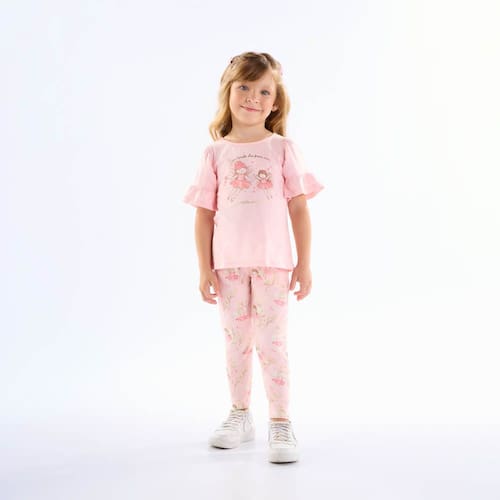 O dia na casa da madrinha pede por um look confortável e estiloso. Conjunto composto por uma blusa meia malha na cor rosê com estampa de fadinhas em foil e a legging em cotton leve com elástico no cós para melhor movimentação e conforto com estampa digital de fadinhas na cor rosê.