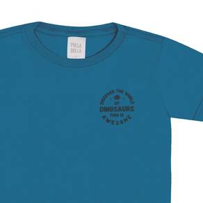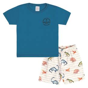 Uma nova aventura jurássica esta preste a começar! Aposto no conjunto mundo dos dinos para seu pequeno explorador brincar estando confortável e estiloso, conjunto composto pela camiseta meia malha na cor azul cobalto com estampa puff de dinossauro com escrita "descubra o mundo dos dinos, isso é incrível" e a bermuda em moletom linho na cor natural sublimado com estampa de dinossauros.