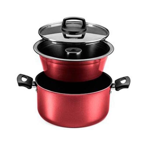 Conjunto Pudim Banho Maria Cereja TVT Nº20 - MTAFabricado no melhor padrão de qualidade, com corpo em Alumínio, o Conjunto Pudim Banho Maria Cereja da MTA Alumínios permite que você faça pudim em Banho Maria e ainda pode usar o caldeirão para fazer qualquer outro prato delicioso, até mesmo uma feijoada. Com capacidade para 2,4 Litros, 20 cm de diâmetro, 0,827 kg e com 1 mm de espessura, possui 19,5 cm de altura, 24 cm de largura e 23 cm de comprimento. Qualidade, funcionalidade e acima de tudo, praticidade.