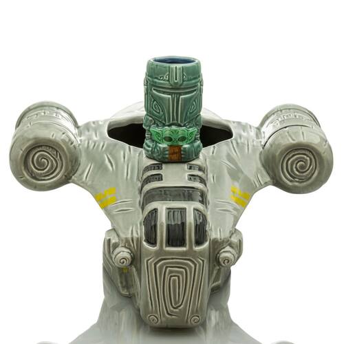 - ESCULPIDO POR ESPECIALISTAS: Esta releitura tropical das aventuras de Mando apresenta o Razor Crest como uma enorme tigela de ponche para transportar bebidas ou lanches até a mesa. Entregando a recompensa está um mini muglet de Din Djarin segurando Grogu.