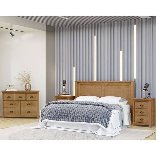 Conjunto Quarto: 1 Cabeceira, Cômoda 7 Gavetas e 2 Mesas de Cabeceiras Topázio Freijó Madeira Pinus - Finestra