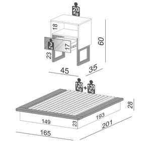 DIMENSÕES: Mesa de Cabeceira: A:60 x L:45 x P:35 Cm 14,9 Kg Cama Casal: A:28,2 x L:165 x P:201 Cm 62,2 Kg