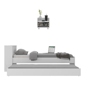 Renove seu ambiente com o Conjunto Quarto Bicama com Baú e Mesa de Cabeceira com Rodízios Multimóveis MP4121. A mesa de cabeceira é produzida em MDP com acabamento acetinado (cerca de 20% de brilho), que garante maior durabilidade e facilidade na limpeza, possui 1 gaveta com amplo espaço interno e corrediças metálicas que proporcionam mais leveza no manuseio. Os rodízios facilitam a movimentação do móvel na hora da limpeza. Já a bicama solteiro para colchão 188x78cm é produzida em MDP com acabamento em pintura UV Premium de alta resistência. Possui um baú embutido com um amplo espaço para acomodar as roupas de cama e outros pertences, deixando o seu ambiente organizado. Bicama suporta até 100kg cama principal / 70kg cama auxiliar e NÃO acompanha colchão.