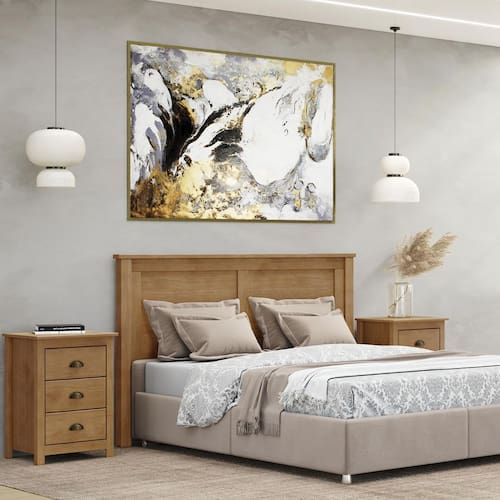 Conjunto Quarto: Cabeceira Cama, 2 Mesas de Cabeceiras Topázio Freijó Madeira Pinus - Finestra