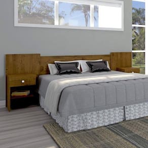 "A cabeceira extensível Bélgica é prática, adaptável, além de ser muito bonita. Você pode montá-la para receber box de até 1,58 metros. Você pode montá-la de forma. Possui mesas de cabeceira com 2 gavetas com corrediças metálicas, e duas prateleiras. Além de tudo isso, o painel traseiro, também é adaptável à altura do colchão, facilitando a instalação e o posicionamento. É superlegal estar em casa e ter todo conforto a seu dispor. Temos o produto ideal para sua comodidade, um super guarda roupas que vai deixar tudo organizado e fácil de achar. O guarda Roupas Vila Velha é enorme, bem dividido, e resistente. Feito com matéria prima resistente, corrediças metálicas, puxadores em ABS, e ferragens de alta resistência. Possui Portas: 06 Ambiente: Quarto Cor: Canelato Rústico/Marroml Brilho Informação Complementar: 1x Cabeceira Casal/Queen Extensível 2 Mesas de Cabeceira Bélgica Light Canelato Rústico Largura: 255 cm Altura: 91 cm Peso: 29,48 kg Profundidade: 39 cm Necessita Montagem: Sim1x Guarda Roupa Casal 6 Portas 9 Gavetas Vila Velha Canelato Rústico/Marroml Brilho Largura: 209 cm Altura: 207 cm Peso: 116,67 kg Profundidade: 47 cm Necessita Montagem: Sim Material Principal: MDP