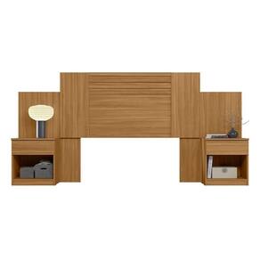 O Conjunto de Cabeceira segue o mesmo design elegante com acabamento ripado e verniz fosco.