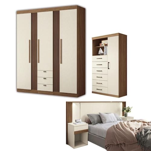 É kit de fábrica: Sim | Requer montagem: Sim | COMNTO DO PRODUTO (CM): 247,8 | COMNTO PRODUTO COM EMBALAGEM (CM): 247,8 | CONTEÚDO DA EMBALAGEM: 1 Guarda Roupa 1 Multi Cômoda 1 Cabeceira | CORES DO PRODUTO (FILTRO DE CORES): Jatobá/Areia | COR PREDOMINANTE: Jatobá | DESCRIÇÃO DO TAMANHO: 54,8X61,7X247,8 | É KIT?: Sim | ESTADO DE ORIGEM: PR | ALTURA DO PRODUTO (CM): 56,3 | LARGURA DO PRODUTO (CM): 61,7 | LARGURA PRODUTO COM EMBALAGEM (CM): 61,7 | MARCA: Casa H | MATERIAL PARA FILTRO: MDP | MATERIAL PRINCIPAL: MDP | PESO DO PRODUTO (KG): 225,35 | PESO PRODUTO COM EMBALAGEM (KG): 225,35 | PRODUTO: Conjunto Quarto | PRODUTO PRECISA DE MONTAGEM?: Sim, a montagem é facil mas sugerimos a contratação de um montador para a montagem do produto. Não nos responsabilizamos por danos cas no ato da montagem. | QUANTIDADES DE CAIXAS DE EMBALAGEM: 6 | INSTRUÇÕES/CUIDADOS: Limpar com flanela ou pano macio seco, não utilizar produtos abrasivos, desengordurantes, álcool ou solvente. Não expor o produto diretamente à luz solar e à umidade | ALTURA DO PRODUTO COM EMBALAGEM (CM): 54,8