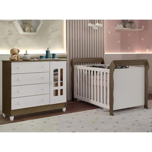 +O+conjunto+Eloa+%E9+ideal+para+as+mam%E3es+que+buscam+conforto+e+sofistica%E7%E3o+em+itens+%FAnicos.+O+ber%E7o+Elo%E1+vira+uma+linda+mini+cama+ou+um+mini+sof%E1+para+quando+seu+beb%EA+estiver+crescidinho+e+a+c%F4moda+frald%E1rio+Ariel+%E9+ideal+para+ajudar+na+organiza%E7%E3o+das+roupinhas%2C+n%E3o+%E9+o+m%E1ximo%3F%21+Nossos+produtos+s%E3o+fabricados+com+materiais+dur%E1veis+e+de+alta+resist%EAncia+mec%E2nica. Ambiente Principal: Quarto de Bebê calculo: unidade Certificado: 006805/2019 Complexidade da Montagem: Média: pode ser montado por mais de uma pessoa e/ou necessite de maior conhecimento para montagem Cr: Branco/Amadeirado Cr do Produto: Branco/Amadeirado Escala de Brilho: Fosco Itens Inclusos: 1 Berço, 1 Cômoda e Manual de Montagem Linha ou Coleção: Eloa Manual de Montagem e Instalação: https://cdn2.madeiramadeira.com.br/atributo/carolina-moveis/564927-19909.pdf Material Principal: MDF/MDP Medida de Cada Item: Berço: Altura: 89cm Largura: 77,9cm Comprimento: 154cm Cômoda: Altura: 92,5cm Largura: 40,5cm Comprimento: 95,2cm Necessita Montagem: Sim Origem do Produto: Nacional Peso: Berço: 29 Kg Cômoda: 28,5 Kg Pintura Atóxica: Sim Recomendações de Uso, Manutenção e Limpeza: Limar com pano úmido sem uso de produtos quimicos Sistema de Montagem: Cavilhas e parafusos Suporta Até (kg): Berço: 50 Kg Comoda: 30 Kg Tamanho: