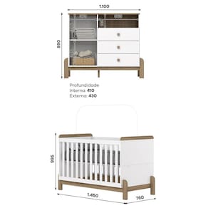 - Pés em MDF Revestidos. Acompanha Manual de Instalação: Sim Altura do Conjunto: 99,5 cm Ambiente Principal: Quarto de Bebê Certificado: 002 990/2024 Certificado INMETRO (código): 002 990/2024 codigo_ean: 7900288232038 Complexidade da Montagem: Média: pode ser montado por mais de uma pessoa e/ou necessite de maior conhecimento para montagem Cor: Branco/Jequitibá Cor do Produto: Branco/Jequitibá Cor Interna: Trama Branco (Branco Acinzentado) Escala de Brilho: Fosco Largura do Conjunto: 145 cm Linha ou Coleção: Ternura Manual de Montagem e Instalação: https://product-hub-prd.madeiramadeira.com.br/585056077/documents/62b74a57-f93d-4466-9c2d-f2afe85c2a0f3180705326617569244181629.pdf Marca: Henn Material da Gaveta: MDF/MDP Material da Porta: MDF/MDP Material da Prateleira: MDF/MDP Material do Estrado: MDF/MDP Material do Fundo: MDF Material Principal: MDF/MDP Medida de Cada Item: Berço: 99,5 x 145 x 76cm; Cômoda: 104 x 98 x 43cm (AxLxP) modular: Não Necessita Montagem: Sim Origem do Produto: Nacional Peso: Berço: 33kg; Cômoda: 35kg Peso de Cada Item: Berço: 33kg; Cômoda: 35kg Porta Janelada: Não Possui Certificado: Sim Possui Espelhos: Não Possui Gavetas: Sim Possui Portas: Sim Possui Prateleiras: Sim Possui Rodízio: Não Profundidade do Conjunto: 76 cm Quantidade de Gavetas: 03 Quantidade de Prateleiras: 01 Recomendações de Uso, Manutenção e Limpeza: Para limpeza de seu móvel, use uma flanela limpa e seca. Não utilize produtos químicos que possam danificar o produto. Sistema de Montagem: Parafusos e Cavilhas Tipo de Corrediça da Gaveta: Metálica Telescópica Tipo de Dobradiça/Corrediça da Porta: Metálica Tipo de Porta: Bater