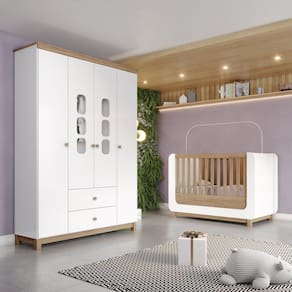 Esse Quarto de Bebê é composto pelo Berço e Guarda Roupas Aconchego.