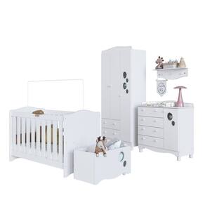 1x Cômoda Infantil 4 Gavetas e 1 Porta Linha Encanto Branco Largura: 93 cm Altura: 93,5 cm Peso: 31,1 kg Profundidade: 41 cm Necessita Montagem: Sim