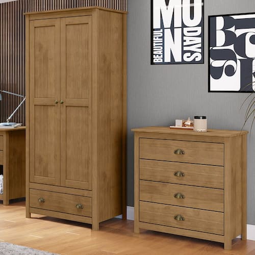 Conjunto Quarto Guarda-Roupa 2 Portas, Cômoda 4 Gavetas Topázio Freijó Madeira Pinus - Finestra