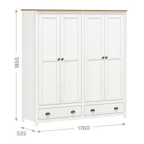 Conjunto Quarto: Guarda-Roupa 4 Portas, Escrivaninha 2 Gavetas Topázio Branco/Freijó Madeira Pinus - Finestra