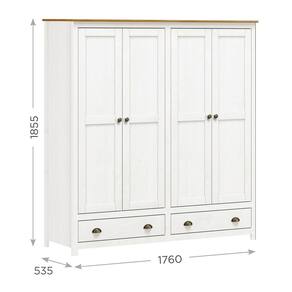 Conjunto Quarto: Guarda-Roupa 4 Portas, Escrivaninha, Cômoda 4 Gavetas Topázio Branco/Freijó Madeira Pinus - Finestra
