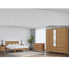 Conteúdo das Embalagens: 1 Guarda-Roupa, 1 Cama Queen, 1 Cômoda 6 Gavetas, 2 Mesas de Cabeceiras, Kit Ferragem, Manual de Montagem;