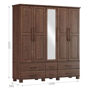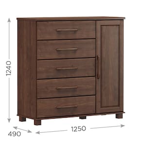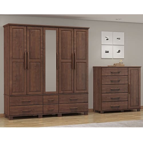 Conjunto Quarto: Guarda-Roupa 5 Portas, Cômoda Sapateira 5 Gavetas Ouro Café Madeira Pinus - Finestra