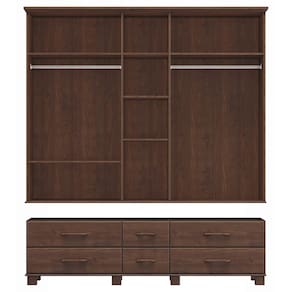 Conteúdo das Embalagens: 1 Cômoda, 1 Guarda-Roupa, Kit Ferragem, Manual de Montagem.