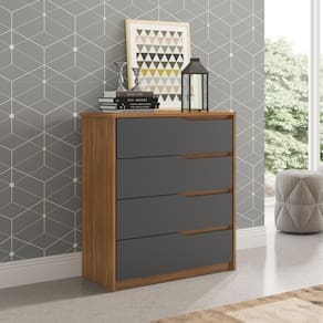 A Cômoda possui 4 gavetas, com profundidades ideais aliadas à beleza do seu design, enriquecidos pelo detalhe curvo nas frentes de gaveta.
