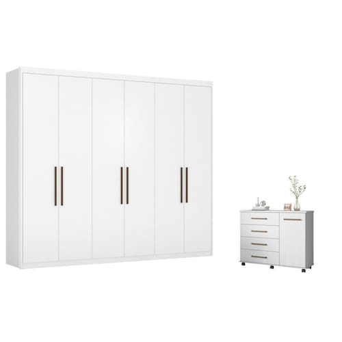 O guarda roupa valoriza o ambiente com medidas internas amplas e com espaços bem distribuídos para uma boa acomodação de roupas e objetos. Possui 6 portas de abrir e 3 gavetas, todas com corrediças telescópicas e profundidade adequada para roupas e sapatos