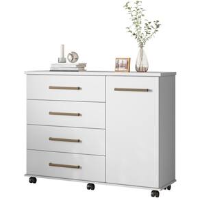 A cômoda dispõe de 4 gavetas, com profundidade excelente para acomodar todas as suas roupas. Possui também uma porta, com prateleira e cabideiro interno.